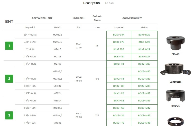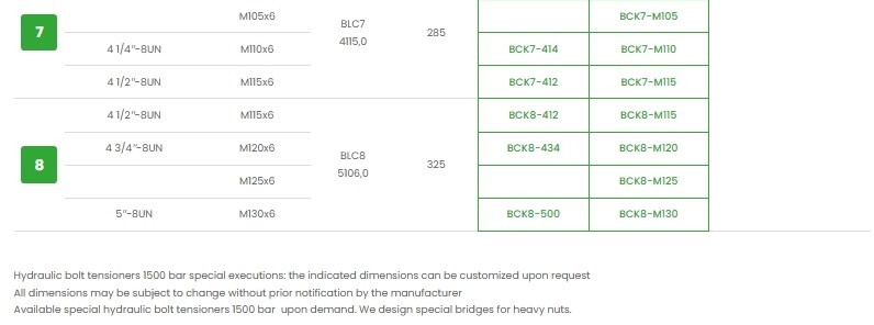 Hydraulic bolt tensioners for bolts from M20 to M130 & from 3/4 “to 5”.