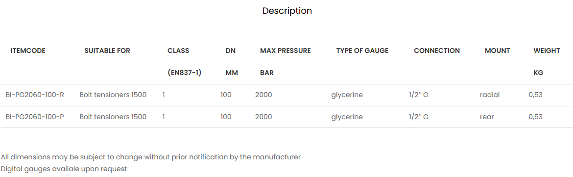 รหัสสินค้า: BR-Pressure gauges 2000 bar